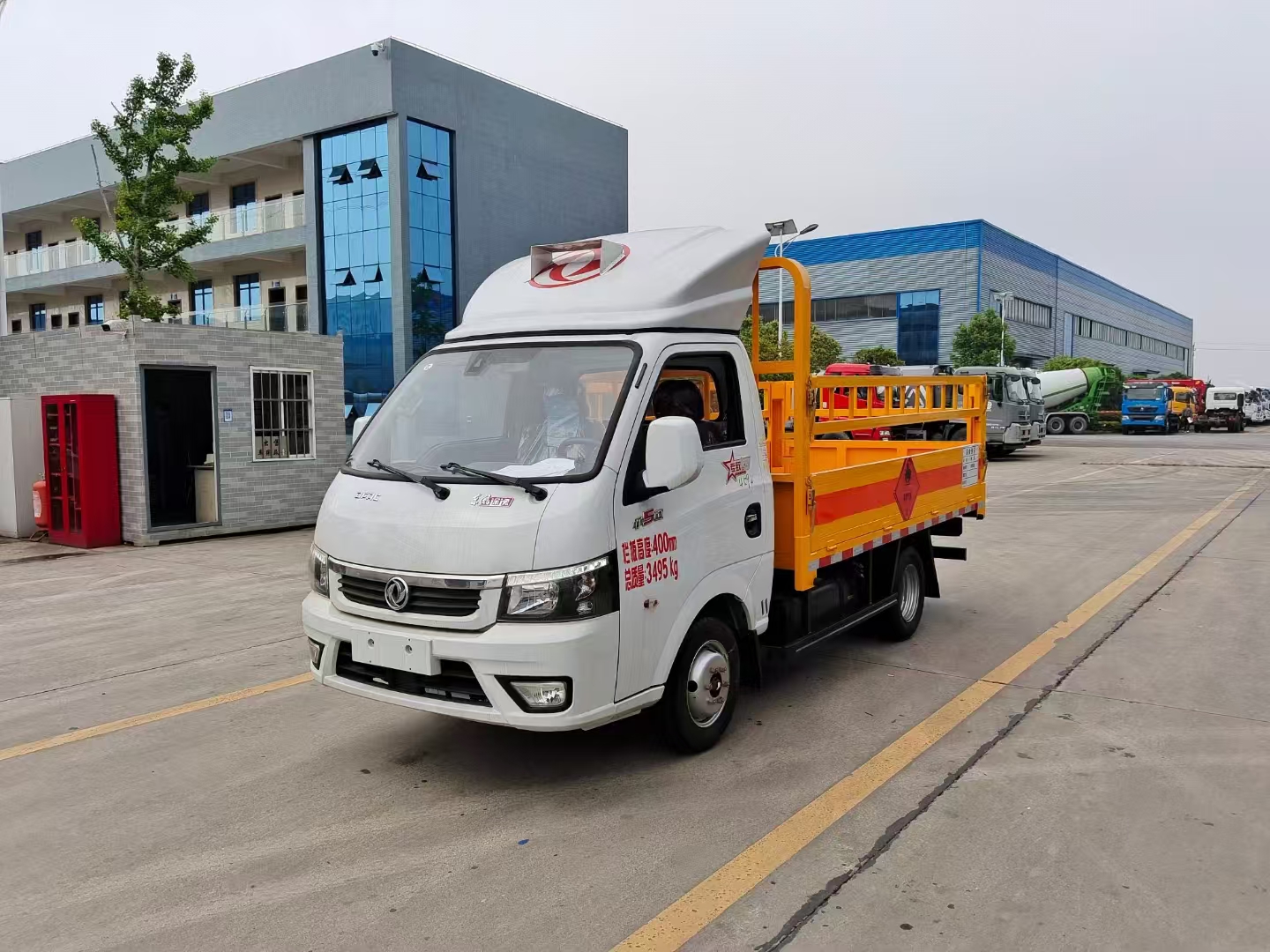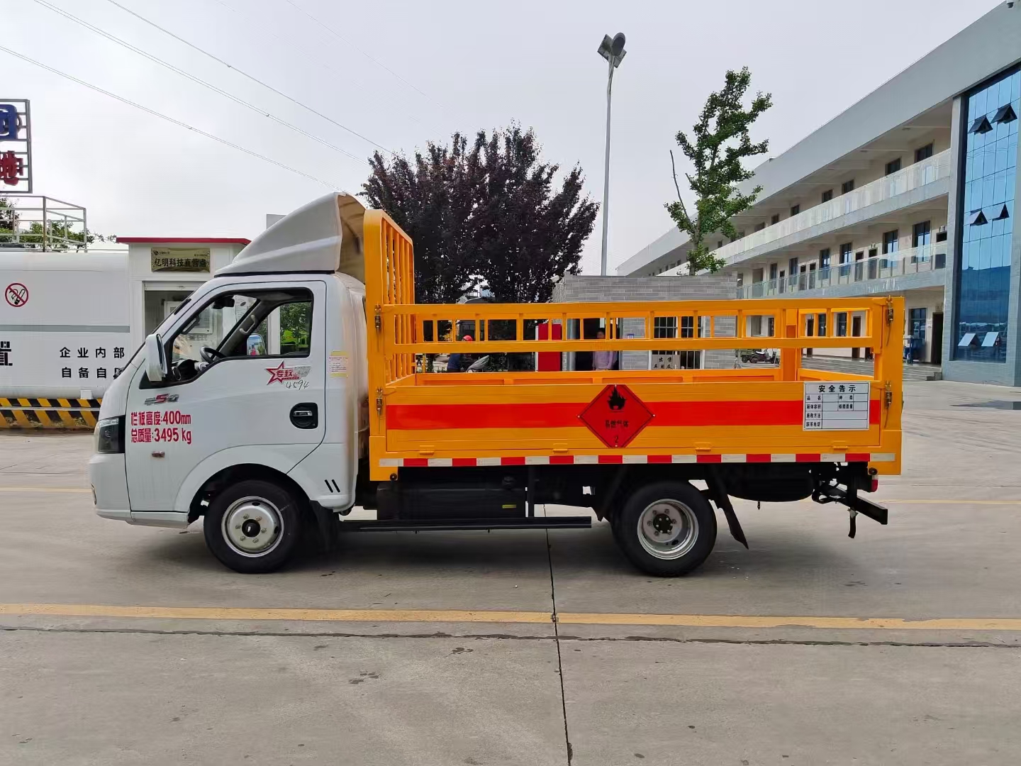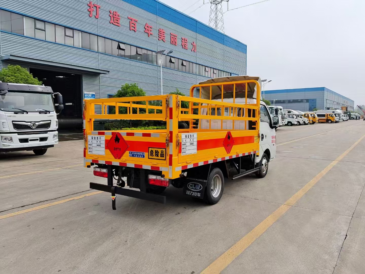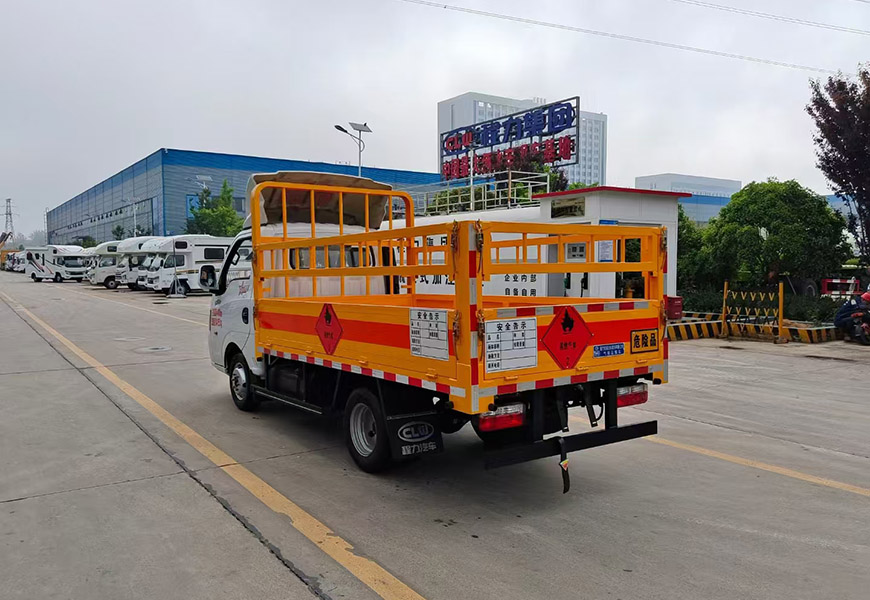 上裝配置 欄板可選裝高欄或者低欄,底板為3mm板材,底板上鋪有靜電膠皮,有靜電帶、滅火器、防火罩。整車國標反光標示及警告標志。