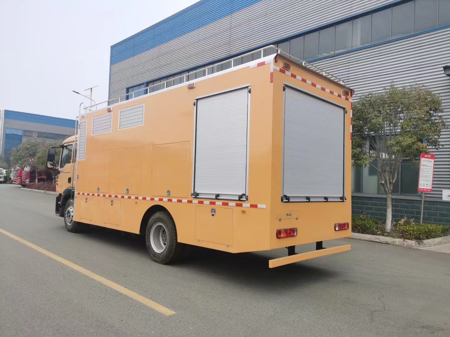 上裝配置  上裝定制靜音箱體濰柴460馬力350千瓦發電機組,同時配6臺便攜式排澇水泵,四臺水泵流量可達500m³/小時,二臺可達1000m³/小時,一臺車載1500m³/自吸泵,總流量6000m³/小時,揚程10米,每臺泵配2根20米長 直徑20厘米的排水管。程力應急抗洪搶險車系列排澇車一般多用于梅雨季節汛期防汛的緊急搶險排澇,效果非常顯著,其優點排水量大、速度快,有效解決汛期難題。