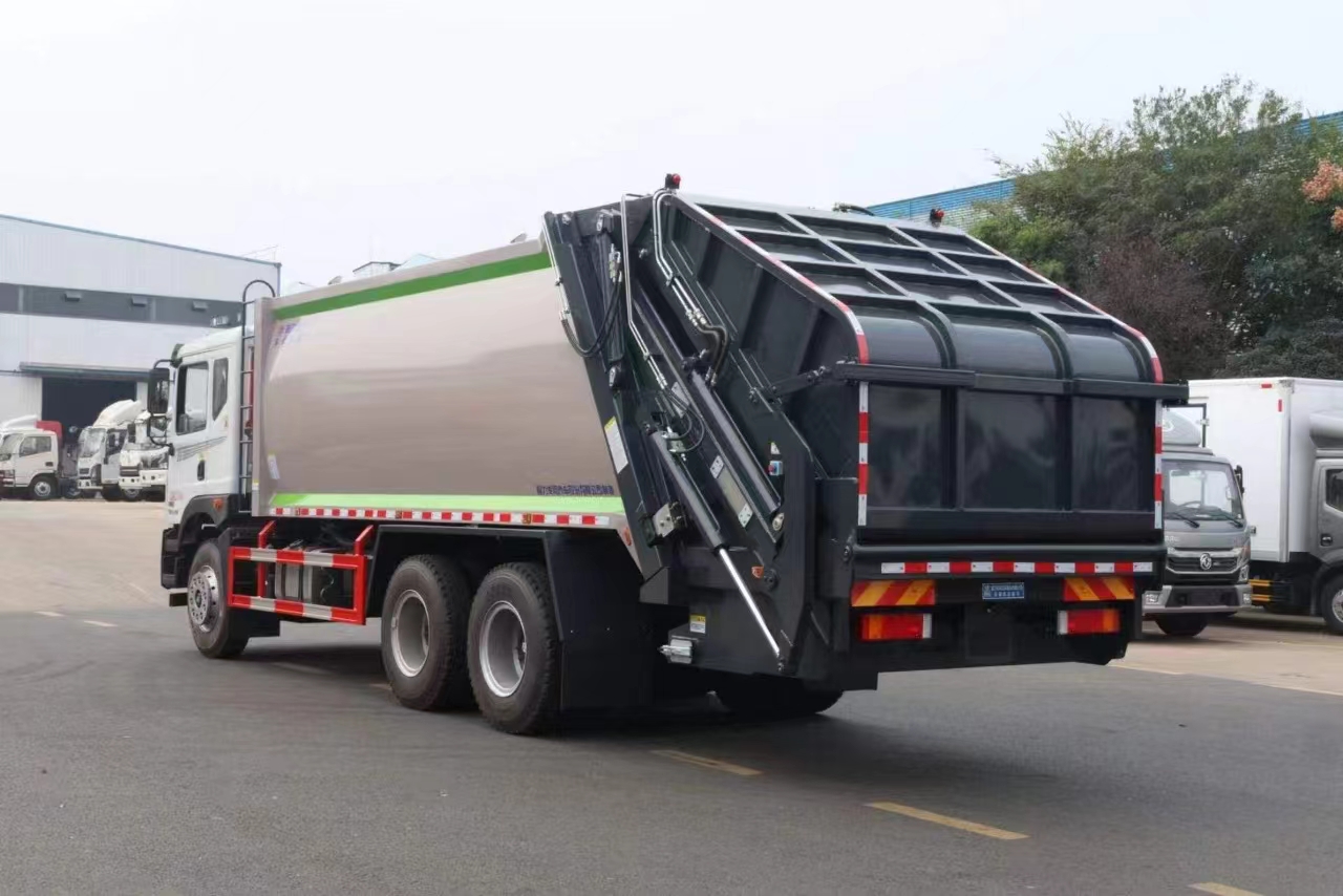 | 上裝配置 | 新款弧形箱體,箱體容積加大約22立方,箱體為優質高強度Q345錳鋼制作,底箱及填充器采用加厚鋼板,耐腐蝕使用壽命長,三層油漆噴涂處理/電泳工藝。裝載循環以及垃圾排出時間快,上裝部分具備雙向壓縮和蠕動壓縮功能帶。新款結構加大填充器,手電一體操作模式,帶駕駛室操作,帶駕駛室一鍵卸料功能,尾部裝置可以選裝垃圾翻轉斗,掛桶翻轉板或者大落地斗。PLC/CAN總線控制方式,光電開關加延時雙系統控制,降低故障率,方便維修。帶夜間照明裝置,帶污水箱,標配選用:定制油缸(質保兩年),中梅多路閥,液壓油泵(雙泵雙閥),帶液壓散熱器,嘉善取力器。 | ||