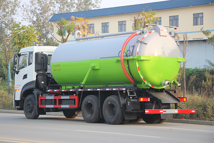 上裝配置 污罐:Q235武鋼6MM厚碳鋼板,標配采用億豐2BE-204水循環泵,防溢閥,視糞管,配一根8米吸污管,罐體封頭一次壓鑄成型、罐體帶舉升,后蓋為液壓開啟。罐內污物可通過后蓋直接傾倒,具有真空度高、噸位大、效率高、用途更廣泛的特點。